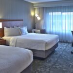 1224 Upper James St., Hamilton, Ontario L9C 3B1The new state-of-the-art lobby at the Courtyard by Marriott Hamilton provides flexibility and choices for our guests. This Hamilton Ontario hotel features our new lobby with inviting spaces to work or relax in, with free Wi-Fi throughout. The highlight of our new lobby experience is The Bistro -which provides guests with healthy food and beverage offerings in the morning and evening dinner service with cocktails. Pamper yourself in one of our King Spa Suites with whirlpool. Unwind in our Indoor Pool, Whirlpool or Exercise Room. Venture out to see popular area attractions such as the FirstOntario Centre, Canadian Warplane Heritage Museum and Dundurn Castle. This Ontario Marriott wedding venue hotel is near McMaster University, Mohawk College and Hamilton Health Sciences offers 4,343 sq ft of state-of-the-art meeting rooms, making it an ideal location for meetings, corporate events, or the perfect wedding reception.